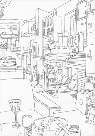 "Der Maler Hans Pfrommer im Atelier1", 2010, Bleistift auf Papier, 29,7x21cm